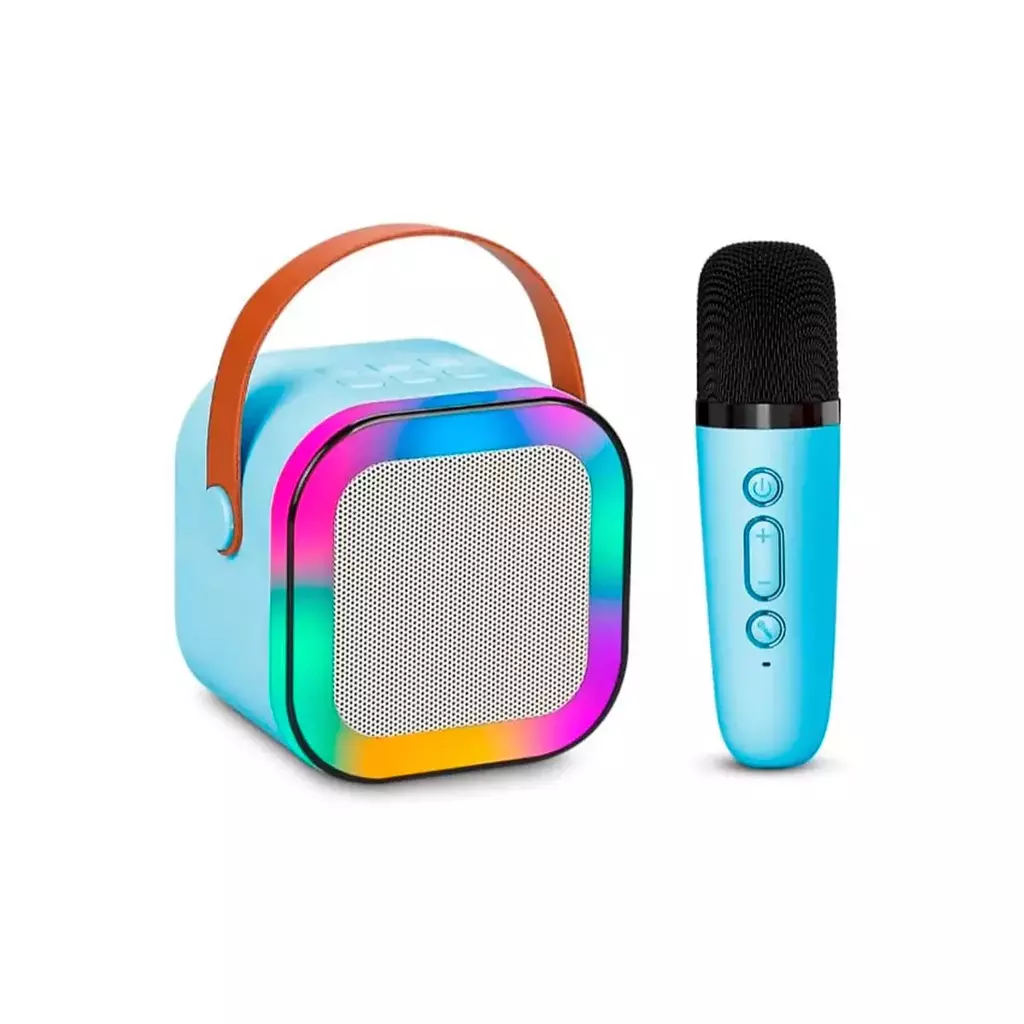 Este parlante portátil con luces LED transforma cualquier espacio en una pequeña fiesta. Su micrófono inalámbrico con controles incorporados permite ajustar el volumen y la música de manera sencilla. Gracias a su conectividad versátil, podés reproducir canciones desde cualquier dispositivo vía Bluetooth, USB o entrada auxiliar.
