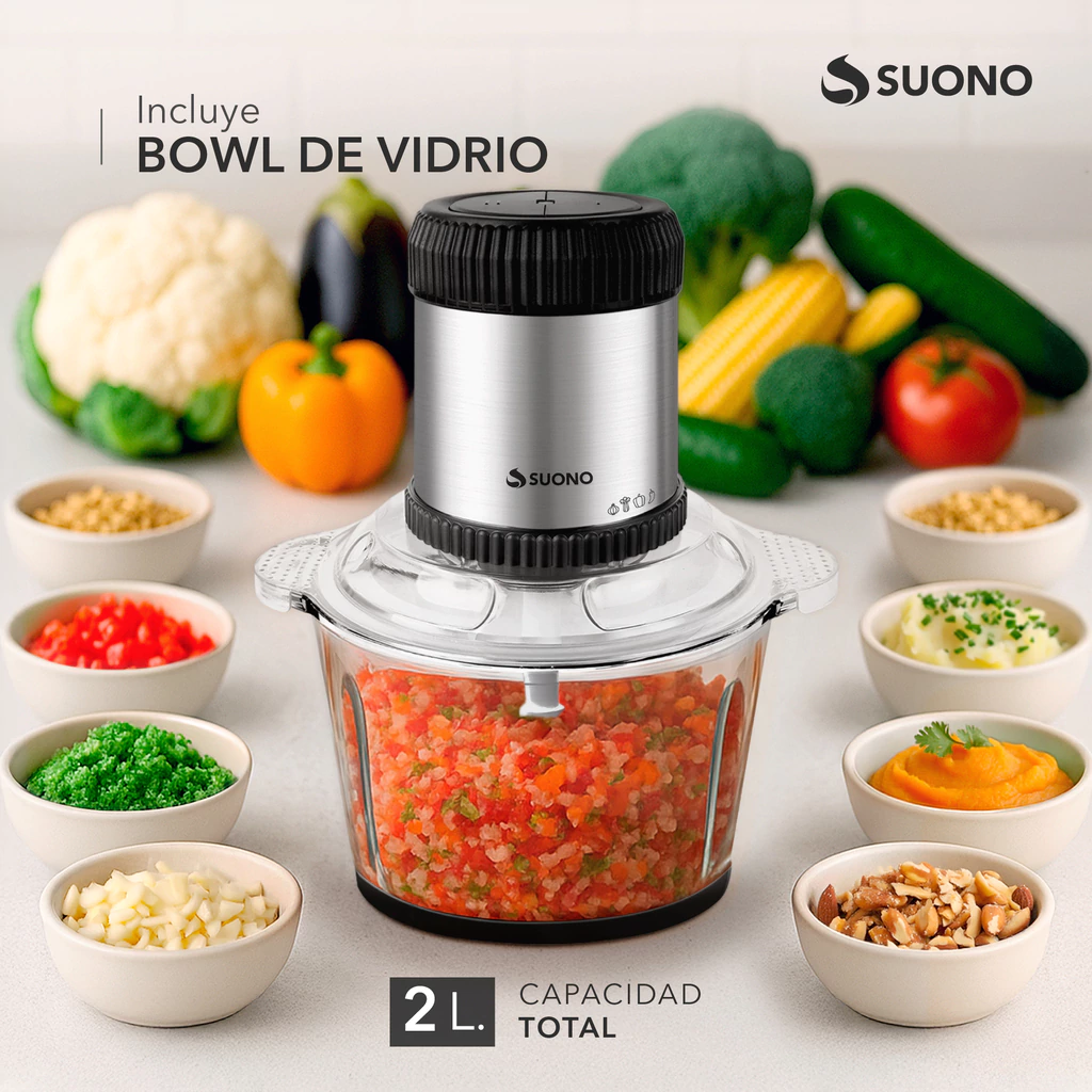 - Motor potente de 500W: Ideal para todo tipo de alimentos, desde verduras y carnes hasta frutas y frutos secos.